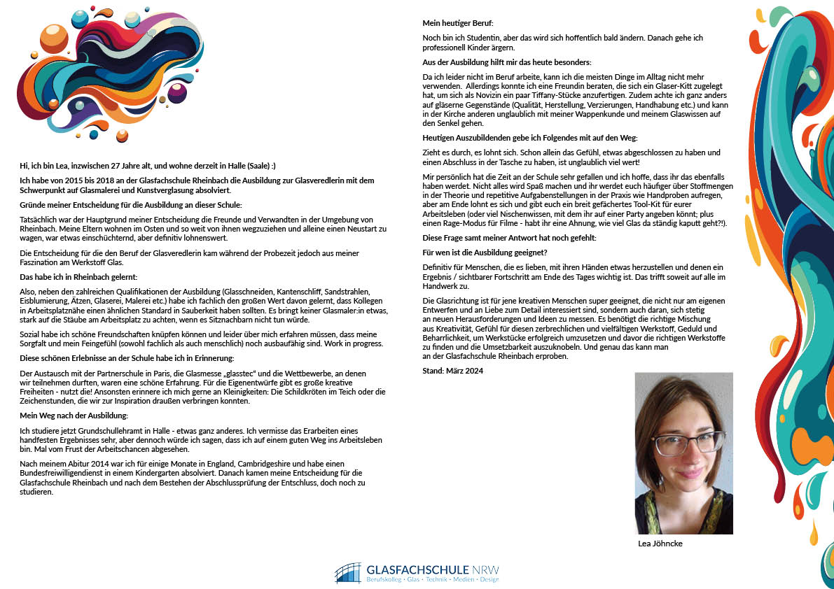 - 2. Bundessieg von Lena Schlösser, Glasveredlerin Fachrichtung Glasmalerei und Kunstverglasung