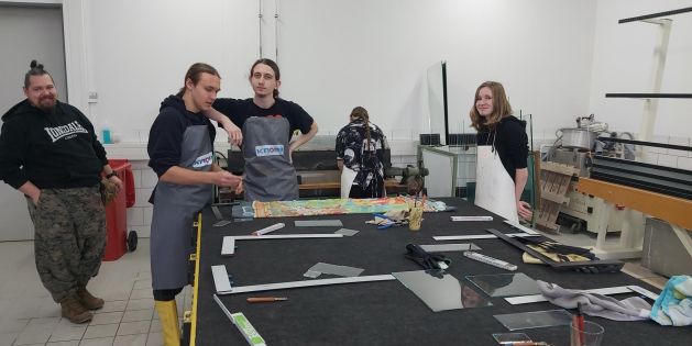 Wir besichtigten auch die Akademie selbst. Mit ihren vielen unterschiedlichen Werkstätten und kreativen Ecken ist das Gebäude ein Traum für jeden, der jemals eine Idee zum Leben bringen will. Besonders inspirierend war der Raum, in dem jeder Studierende seine eigene Ecke hatte, gefüllt mit Modellen, Zeichnungen und Skizzen von ausgearbeiteten Ideen. Der Raum lebte durch die gemeinsamen kreativen Arbeiten auf und war schon an sich eine Quelle der Inspiration. Insgesamt war unser Besuch sehr augenöffnend. Er hat uns eine weitere Perspektive auf einen möglichen Bildungsgang nach dem Abschluss unserer Ausbildung an der Glasfachschule eröffnet und war für unsere weitere Arbeit an Entwürfen sehr nützlich.
