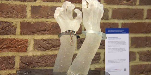 Die Ausstellung betrachtet diese Frage nicht nur aus der kirchlichen Binnenperspektive: So vielfältig die Auszubildenden der Glasfachschule NRW sind, so vielfältig sind ihre Herangehensweisen und Antworten. Plakate zu fairer Mode und ein sich zwischen zwei Betonblöcken krümmender Mensch zeigen Beispiele dafür, wo sich Christ*innen einbringen könnten. Andere Arbeiten nehmen die Voraussetzungen für gesellschaftliches Engagement in den Blick und fordern die Kirche mit Blick auf den Umgang mit sexuellem Missbrauch dazu auf, zunächst sich selbst zu revolutionieren.