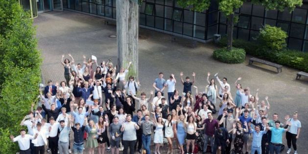 Am Dienstag, den 21.06.22 nahmen die Abiturientinnen und Abiturienten der Staatlichen Glasfachschule Rheinbach stolz ihr Zeugnis der Allgemeinen Hochschulreife in Empfang. Herr Roebers erinnerte an diesem Nachmittag an die großen Herausforderungen durch die Corona-Pandemie und das Hochwasser und lobte das Durchhaltevermögen des Jahrgangs. Die Schülerinnen und Schüler des doppelqualifizierenden Bildungsgangs unterziehen sich in den kommenden Wochen noch der Berufsabschlussprüfung zum gestaltungstechnischen Assistenten und starten somit gut vorbereitet in ihr Berufsleben. Die Feier in der Mensa der Glasfachschule wurde musikalisch abgerundet durch Kim Rühling und bleibt allen Beteiligten sicherlich noch lange in Erinnerung.