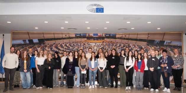 Das Europäische Parlament ist ein beeindruckendes Gebäude, sowohl architektonisch als auch symbolisch. Nach Personalausweis- und Sicherheitscheck um halb elf, begann der Besuch mit einer kurzen Einführung in die Geschichte der Europäischen Union und die Funktionsweise des Parlaments. Wir erfuhren, wie das Parlament als Organ der EU direkt gewählte Abgeordnete aus den Mitgliedsländern zusammenbringt, um Gesetze zu erlassen, die für Millionen von Bürgern in ganz Europa gelten. Besonders beeindruckend war der plenare Sitzungssaal, der von moderner Architektur und technologischer Ausstattung geprägt ist. Der riesige Saal wirkte fast wie ein Theater, mit einer Mischung aus großen Kuppeln und hochmodernen Medienständen. Hier werden bedeutende politische Debatten geführt und Gesetze verabschiedet, die weit über die Grenzen Belgiens hinaus Wirkung entfalten. Das Highlight des Besuchs war das Gespräch mit Vize-Präsidentin Sabine Verheyen, die es den Schüler*innen ermöglichte ein besseres Verständnis zu erlangen, wie sich Politik auf die gesamte EU auswirkt. Zwischen elf und zwölf Uhr erzählte uns die CDU-Politikerin von ihren Arbeitsbereichen im Parlament und beantwortet ebenfalls Fragen, die die Schüler*innen im Vorfeld vorbereitet haben. Frau Verheyen, „Eine Schwarze mit roten Streifen und grünen Punkten“, wie sie sich selbst bezeichnete, um ihren Stand und ihre Sichtweise zwischen den Parteien zu visualisieren, berichtete über das Einwirken in der Digitalisierung, über Integration der Jugend und über kleinere Themen, wie und warum sie sich zum Bespiel für die CDU entschieden hat. Kurz nach dem Gespräch ermöglichte Frau Verheyen uns ein Gruppenfoto mit ihr, um den Besuch einen krönenden Abschluss zu verleihen.