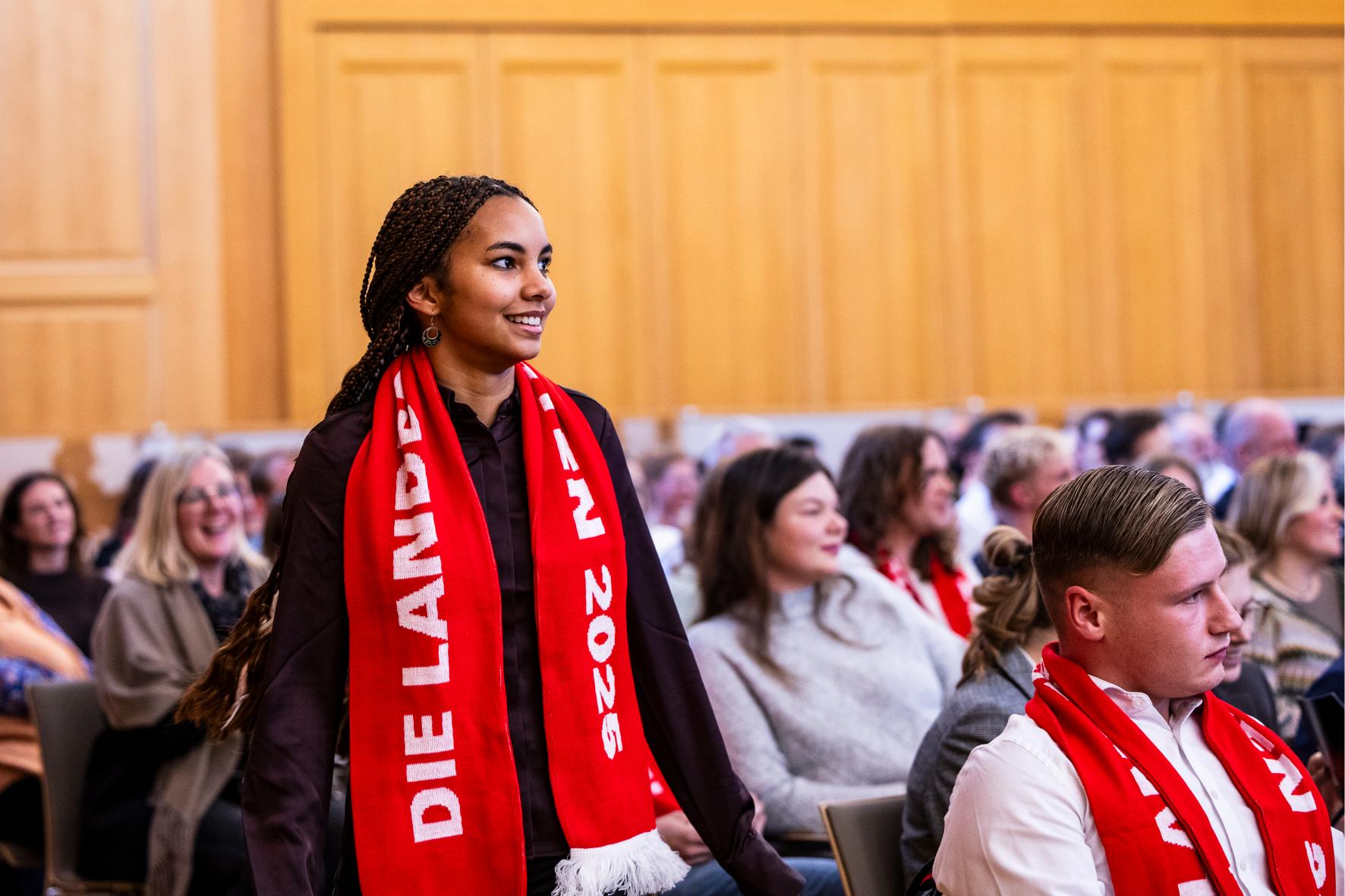 Die Urkunden mit Unterschrift des Ministerpräsidenten des Landes NRW, Hendrick Wüst, als Schirmherr wurden den 74 Landessiegerinnen und -siegern unter tosenden Beifall neben den Herren Heidmeier und Schröder durch Vertreter der sieben beteiligten Handwerkskammern übergeben. Damit einher geht die Chance auf ein Weiterbildungsstipendium der Stiftung „Begabtenförderung berufliche Bildung gGmbH“ in Höhe von maximal 9.135,- €. Besonderes Glück hatte zudem Anta Bocoum bei der abschließenden Verlosung von drei Reisegutscheinen.