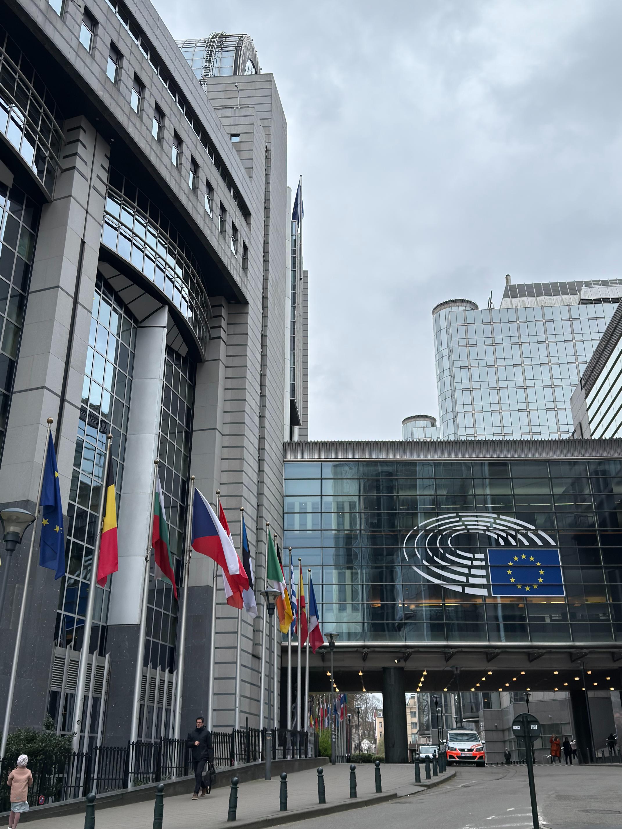 Gegen zehn Uhr erreichten wir Brüssel. Die Stadt empfing uns mit ihrem typischen Mix aus historischen Gebäuden und modernen Bürokomplexen. Der Bus hielt in der Nähe des Komplexes, und wir machten uns zu Fuß auf den Weg zum Europäischen Parlament.