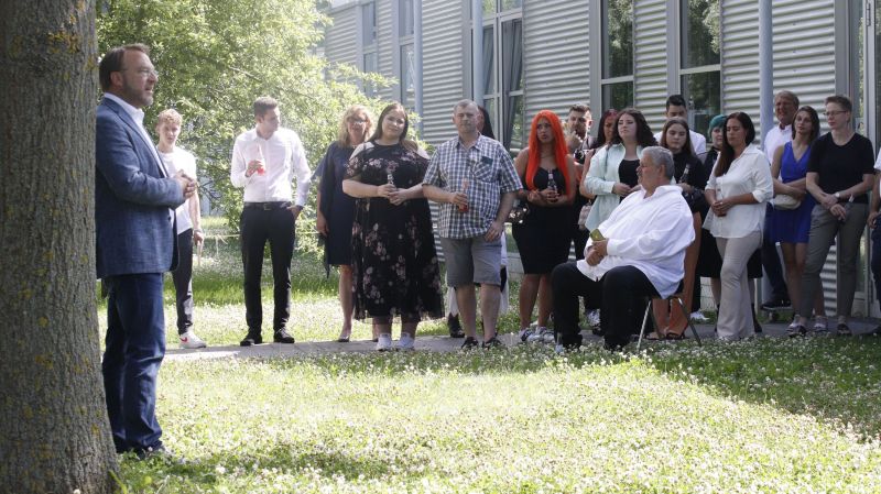 Der Schulleiter Jochen Roebers und der Leiter der Werkstätten Georg Linden würdigten während einer Abschlussfeier gemeinsam mit Freunden und Angehörigen die Leistungen der Schüler*innen auch während der Lockdownphase.