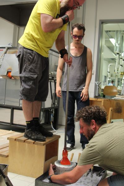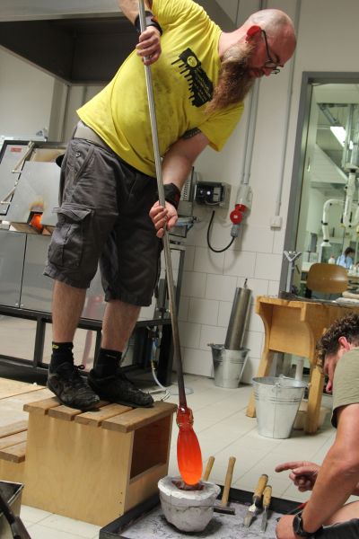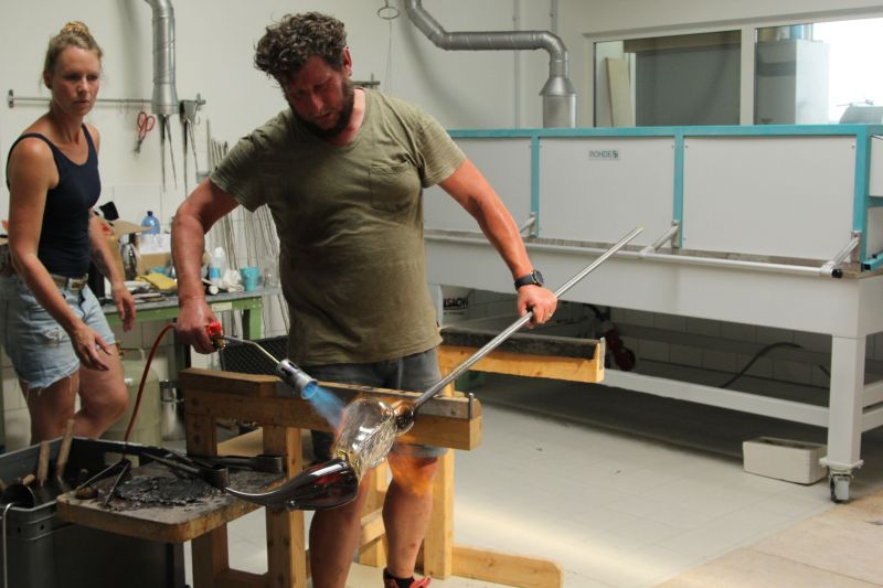 Die Förderung durch die Tutsek Stiftung aus München ermöglichte so den Schüler*innen im 2018 eingerichteten Glasstudio am modernen Schmelzofen und der Glory Hole die Technologien des Glasschmelzens, des Glasgießens sowie des Glasblasens zur Erstellung von Skulpturen zu erproben. Ein Highlight beim 1. Internationalen Glassymposium 2018 in der Schule war unter anderen der australische Glaskünstler Scott Chaseling und John Kenneth Clark aus Schottland. Weitere kleinere Workshop fanden während der Coronapandemie mit regionalen Glasbläsern wie z. B. Korbinian Stöckle aus der Glashütte Gernheim statt. Darüber hinaus wurden im Sommer 2022 im Rahmen des 2. internationalen Glassymposiums Workshops angeboten, in denen künstlerischer Techniken zur Erstellung von skulpturalen Hohlkörpern aus Glas und deren Veredelung sowie weitere Techniken der Glaskunst vermittelt wurden. Es fanden sich international renommierte Glaskünstler*innen (u.a. Mark Locock, Geir Nustad, Tinne Vroonen und Wilhelm Vernim) in Rheinbach ein, um mit den Auszubildenden den Bogen vom römischen Glasblasen mit alten Rezepturen bis hin zum Herstellen von Glasobjekten am modernen Studio-Ofen zu spannen.