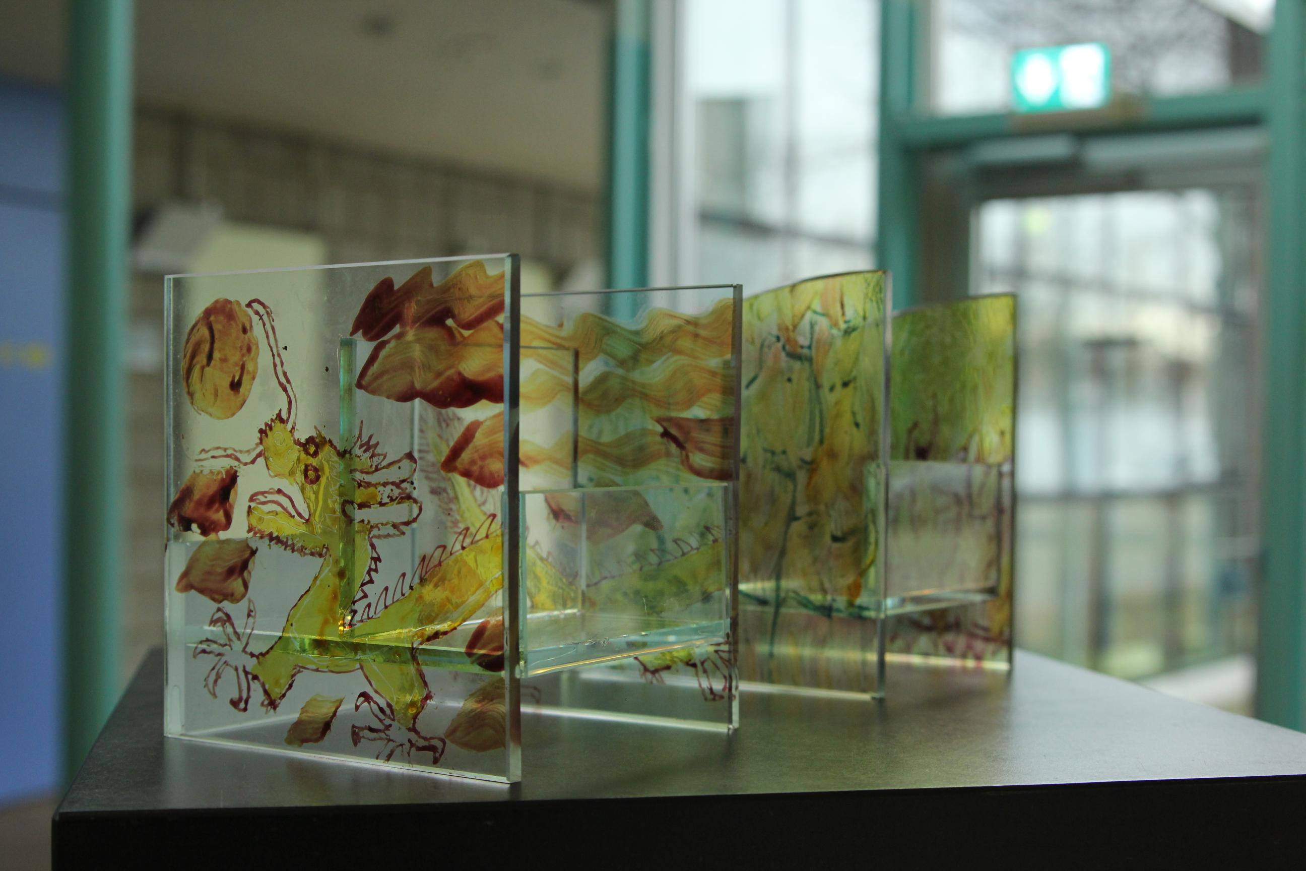 Am ersten Tag stand die individuelle Gestaltung mittels Glasmalerei im Fokus. Die Schülerinnen und Schüler der Gesamtschule gingen hier mit viel Offenheit ans Werk und haben mit verschiedensten Mustern und Motiven persönliche Unikate geschaffen. Am Donnerstag folgte die Planung des Halters mittels einer CAD-Software, der Glaszuschnitt und die maschinelle wie händische Kanten- und Oberflächenveredlung. Am letzten Tag wurden aus den vielen Glasscheiben durch UV-Verklebung der fertige Handy-Halter.