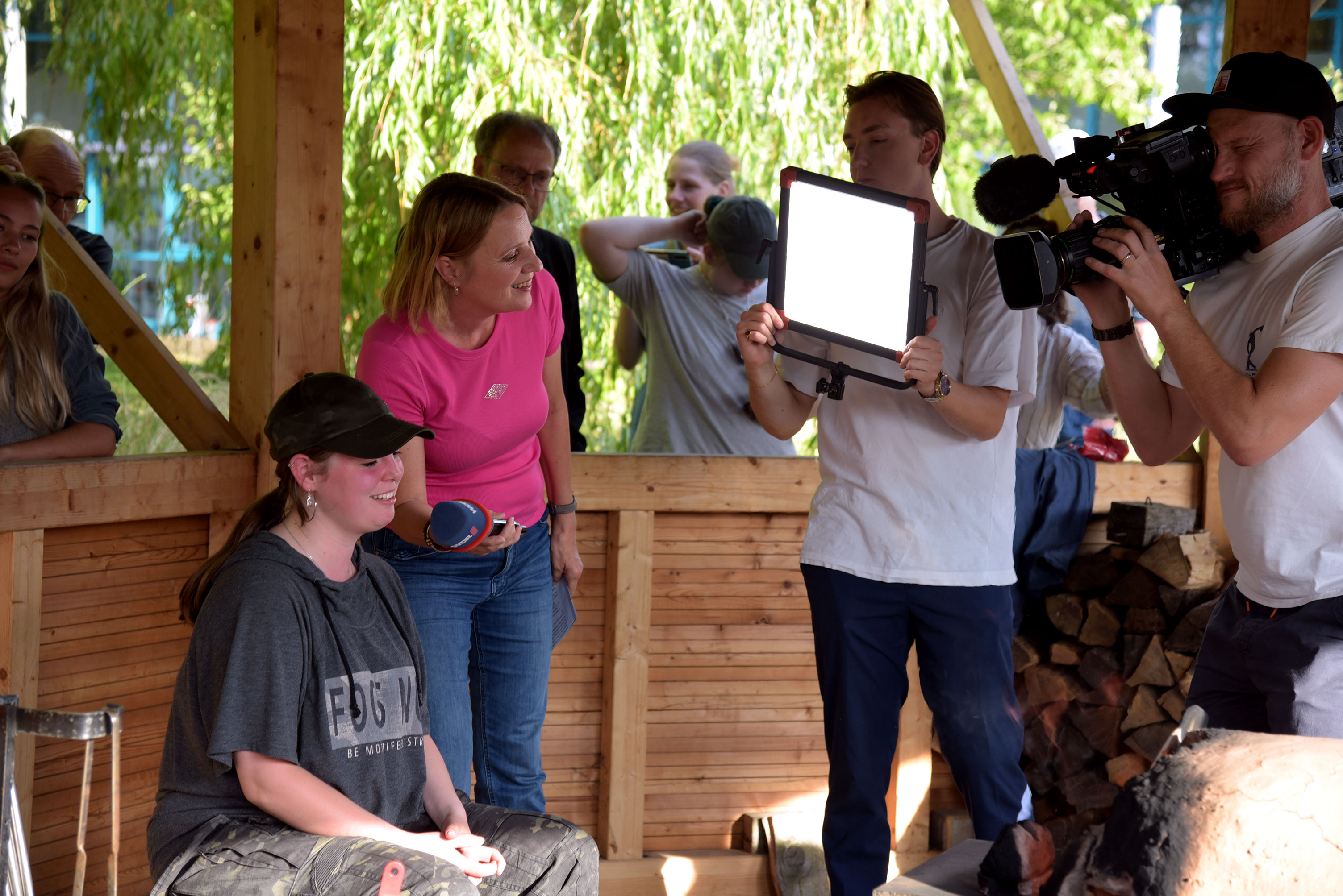 Die kreative Arbeit am römischen Ofen neben dem Glaspavillon an der Glasfachschule geht noch bis zum 18.07. weiter und kann bestaunt werden. Wer sich traut, kann es auch selbst ausprobieren!