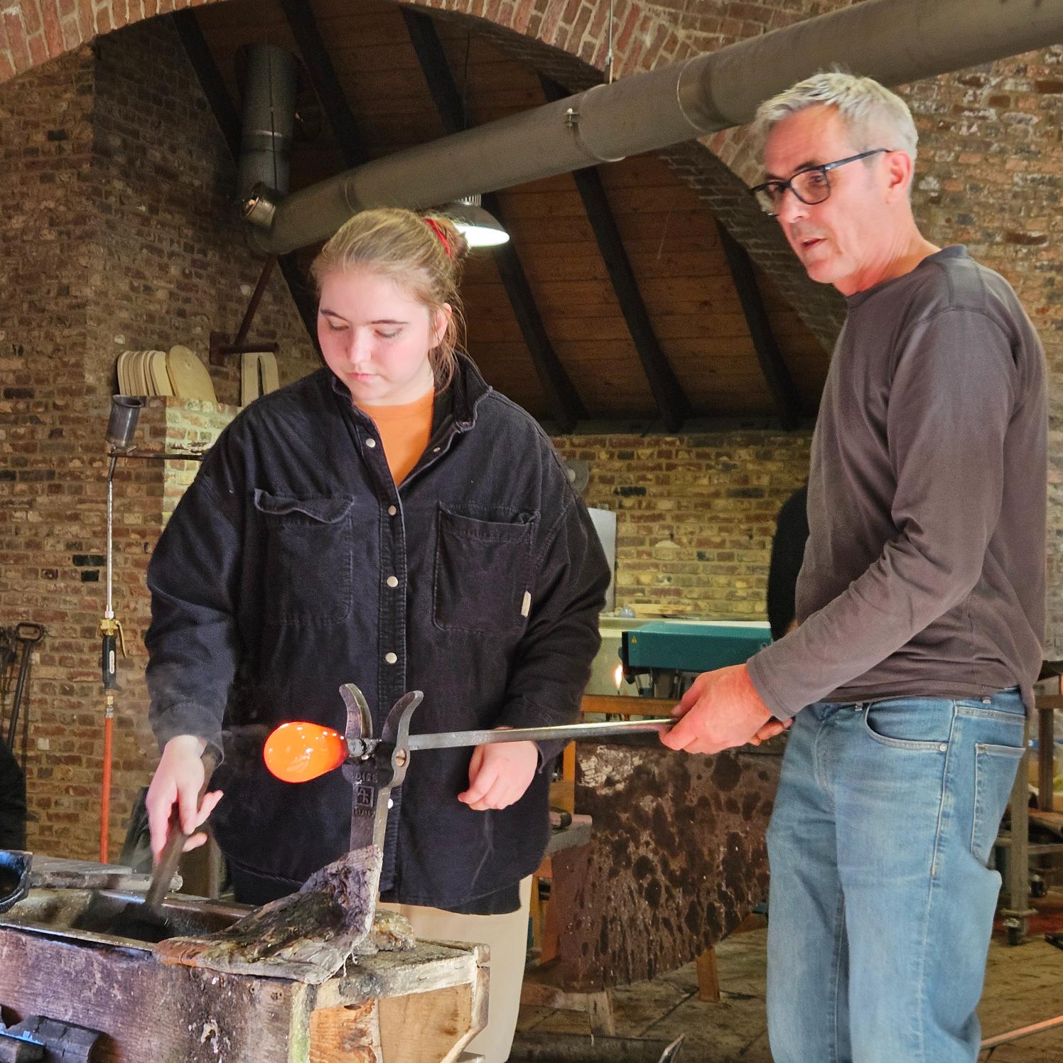 Glashütte Gernheim Am dritten Tag besuchte die Klasse im LWL-Museum die historische Glashütte in Petershagen, wo sie nicht nur in die Geschichte und Technik des Glasmachens eingeführt wurden, sondern auch die Sonderausstellung zu Glas aus Murano im Herrenhaus besichtigen konnten. Unter Anleitung erfahrener Glasmacher gestalteten die Schülerinnen und Schüler eigene Glasobjekte, was wertvolle Einblicke in die Herausforderungen und die Präzision dieses traditionellen Handwerks bot.