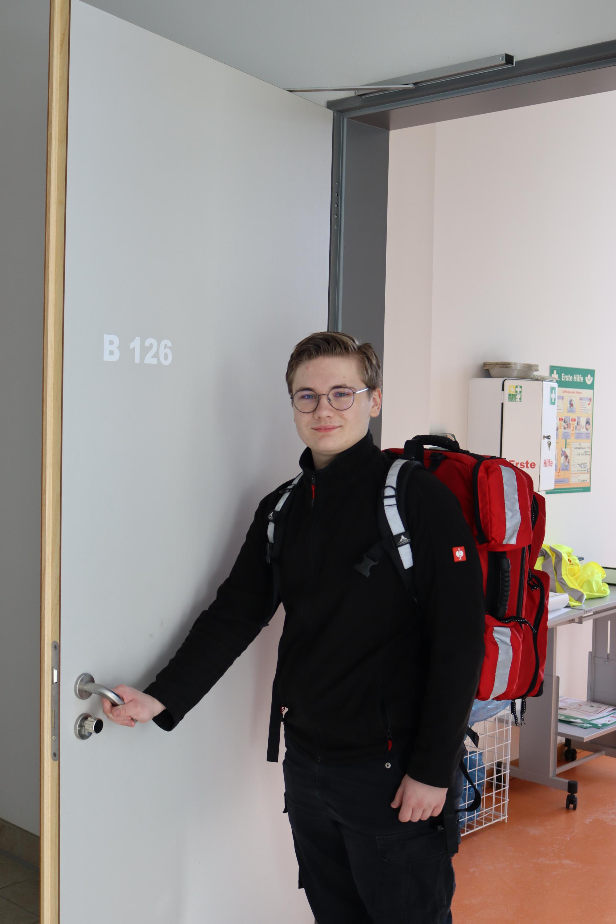Steigerung des Selbstwertgefühls und zur besseren Einschätzung der eigenen Fähigkeiten bei. Die Ausbildung ist kostenfrei, wird jedes Jahr angeboten und dauert ca. ein Halbjahr. Ein Sanitätsraum steht zur Verfügung. Unsere Treffen finden zu bestimmten Terminen donnerstags mittags statt. Gemeinsam im Team hat jeder ein bis zweimal die Woche Bereitschaft.