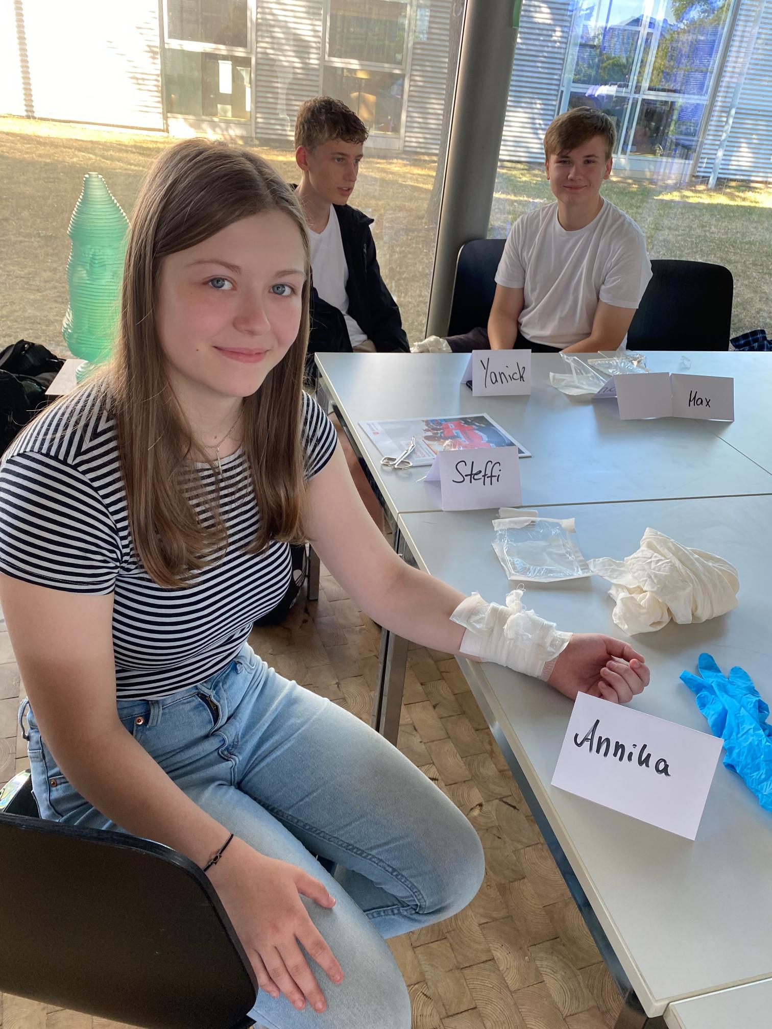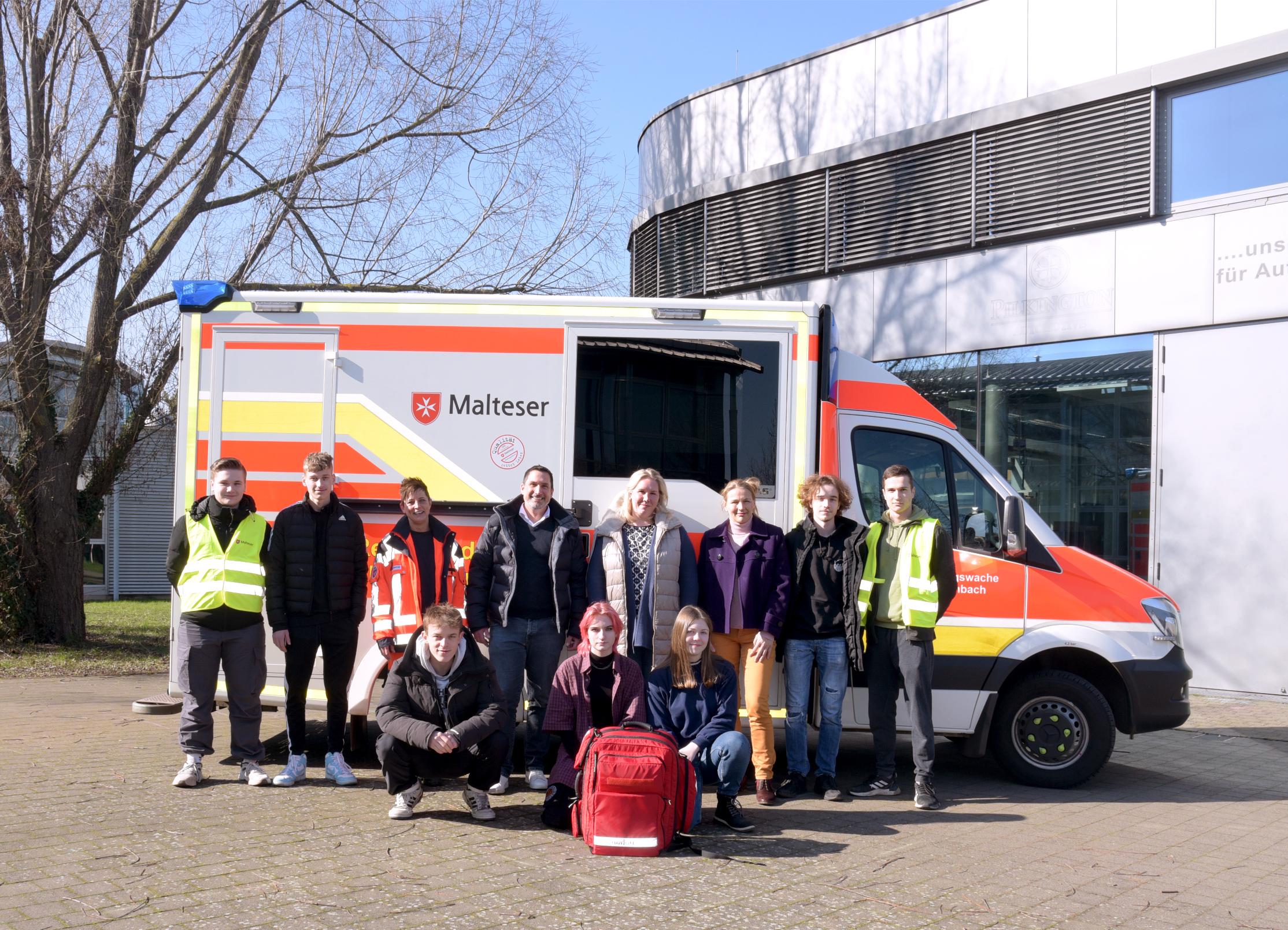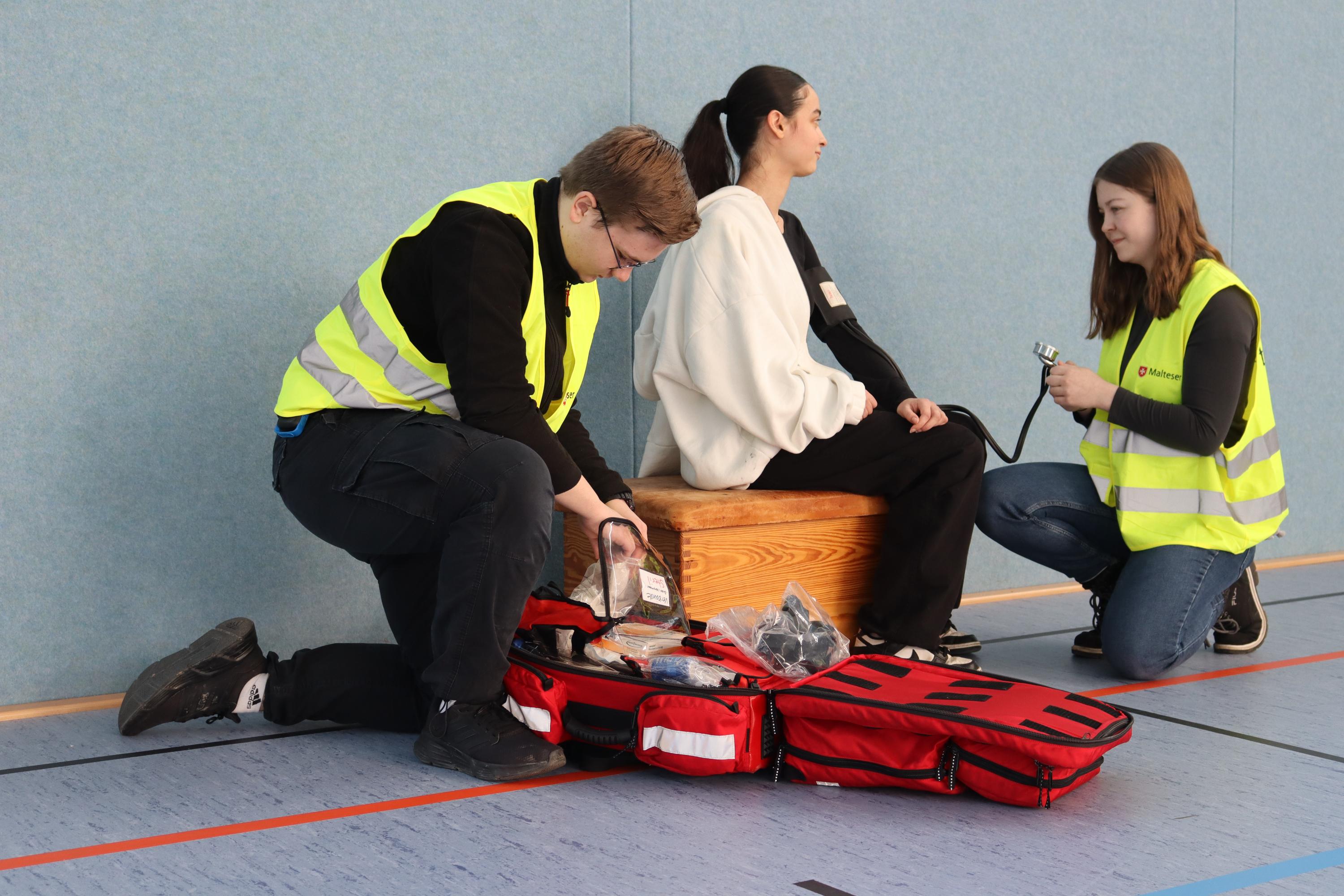 Der Schulsanitätsdienst trägt dazu bei, die Sicherheit an unserer Schule zu erhöhen, schnelle Hilfe leisten zu können und soziales Engagement zu fördern. Schülerinnen und Schüler, die in Erster Hilfe ausgebildet sind, stellen im Rahmen des Schulsanitätsdienstes zusammen mit ihren Lehrpersonen die Erstversorgung von Mitschülerinnen und Mitschülern im Falle von Unfällen, Verletzungen oder Krankheit sicher.