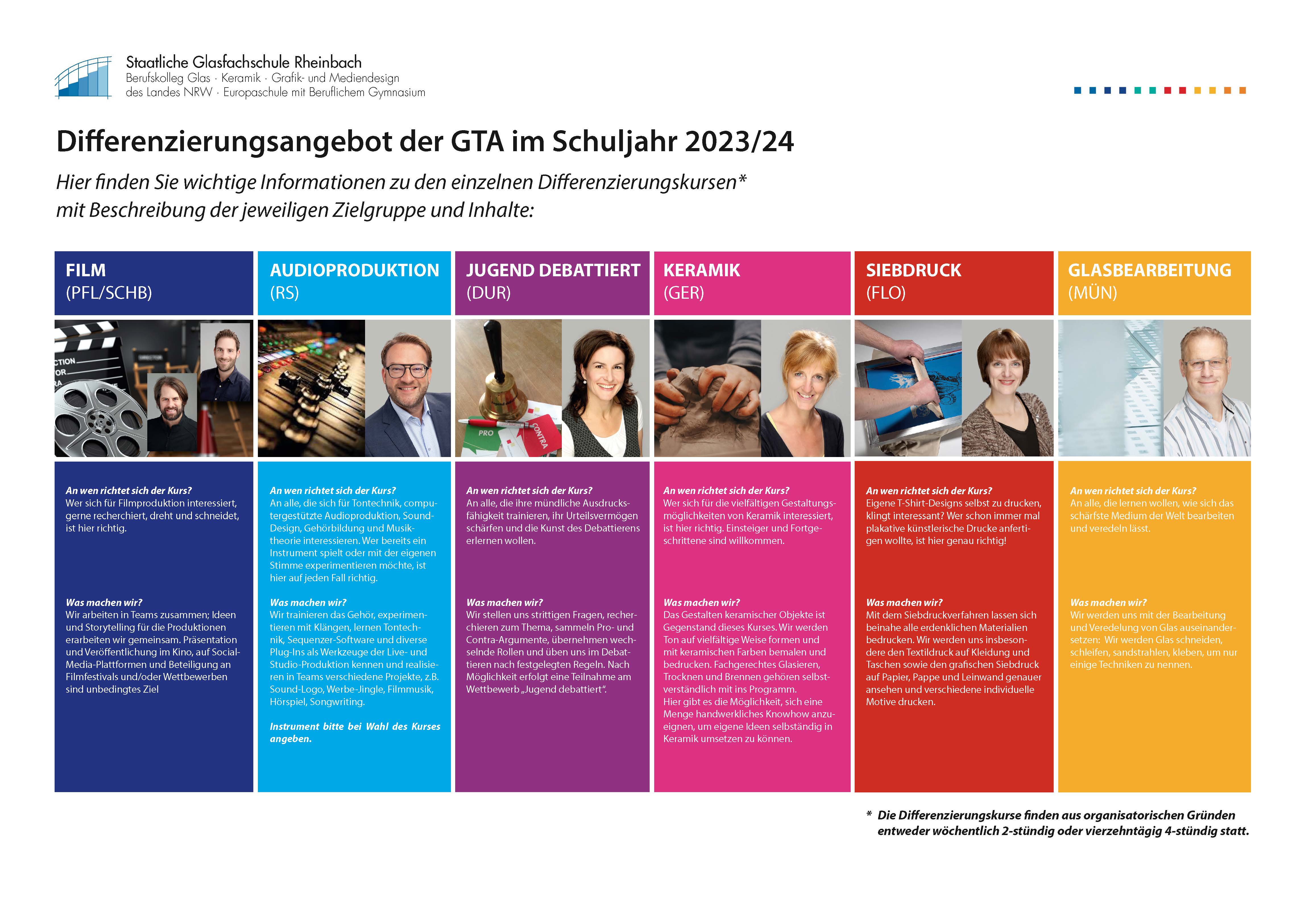 Wir informieren Sie gerne auch in einer individuellen Beratung – vor Ort oder telefonisch. Wir freuen uns über Ihre Terminvereinbarung vorab in unserer Verwaltung unter Tel. 02226 / 9220-0 oder info@glasfachschule.de