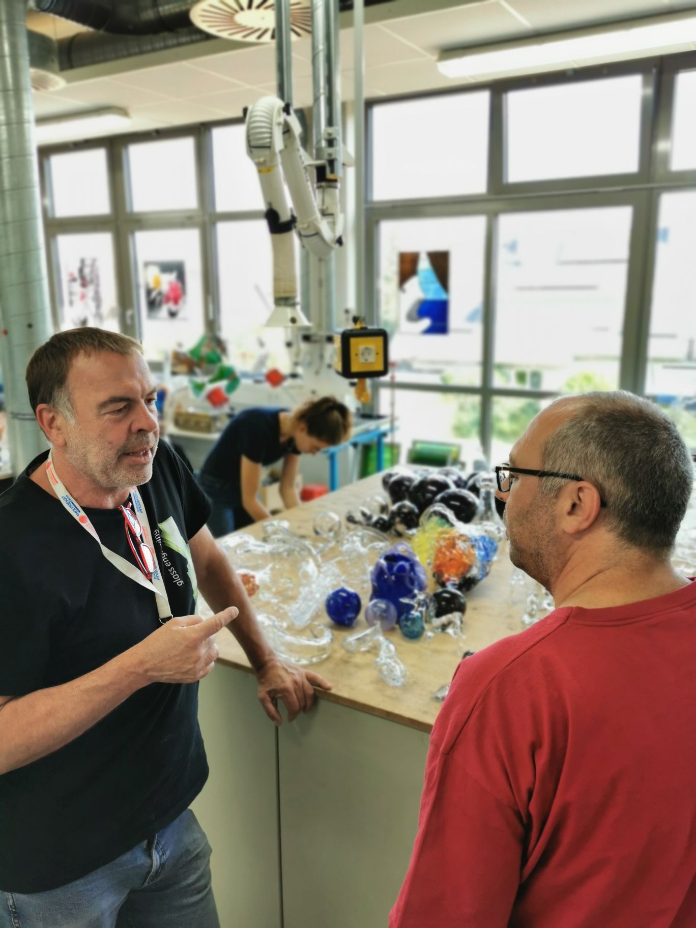 Auch die weitere berufliche Orientierung ist ein Ergebnis des Workshops. Was kann Glas – und was kann ich zukünftig alles mit Glas machen? Diese Frage stellten sich Auszubildende. Und wenn sie in eine kreativ-künstlerische Richtung gehen wollen, finden sie während des Workshops Antworten im umfangreichen Austausch mit den Glaskünstlern als erfolgreiche Role-Models.