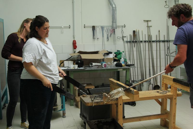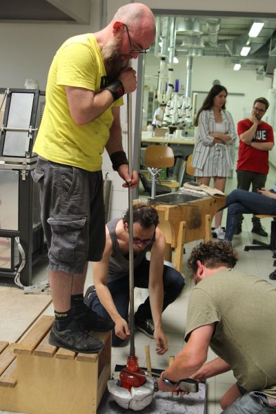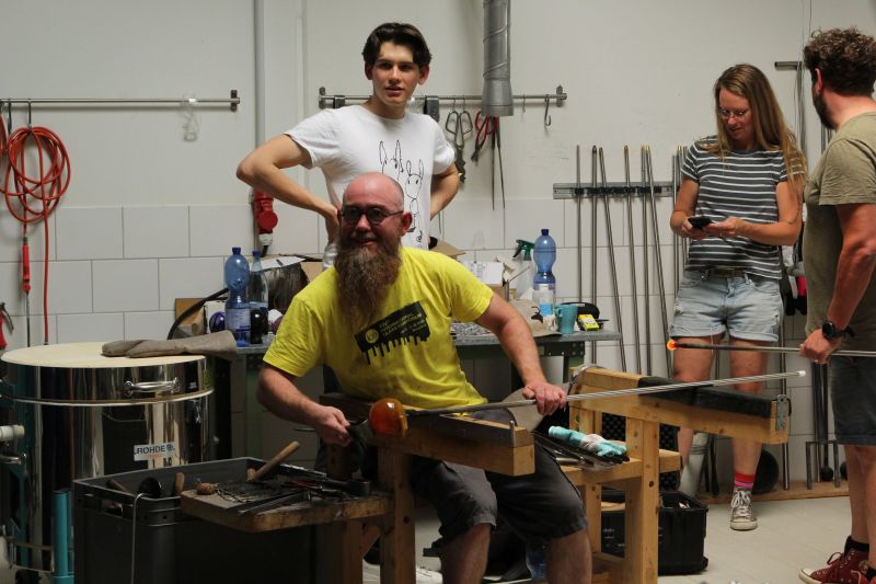 Die Förderung durch die Tutsek Stiftung aus München ermöglichte so den Schüler*innen im 2018 eingerichteten Glasstudio am modernen Schmelzofen und der Glory Hole die Technologien des Glasschmelzens, des Glasgießens sowie des Glasblasens zur Erstellung von Skulpturen zu erproben. Ein Highlight beim 1. Internationalen Glassymposium 2018 in der Schule war unter anderen der australische Glaskünstler Scott Chaseling und John Kenneth Clark aus Schottland. Weitere kleinere Workshop fanden während der Coronapandemie mit regionalen Glasbläsern wie z. B. Korbinian Stöckle aus der Glashütte Gernheim statt. Darüber hinaus wurden im Sommer 2022 im Rahmen des 2. internationalen Glassymposiums Workshops angeboten, in denen künstlerischer Techniken zur Erstellung von skulpturalen Hohlkörpern aus Glas und deren Veredelung sowie weitere Techniken der Glaskunst vermittelt wurden. Es fanden sich international renommierte Glaskünstler*innen (u.a. Mark Locock, Geir Nustad, Tinne Vroonen und Wilhelm Vernim) in Rheinbach ein, um mit den Auszubildenden den Bogen vom römischen Glasblasen mit alten Rezepturen bis hin zum Herstellen von Glasobjekten am modernen Studio-Ofen zu spannen.