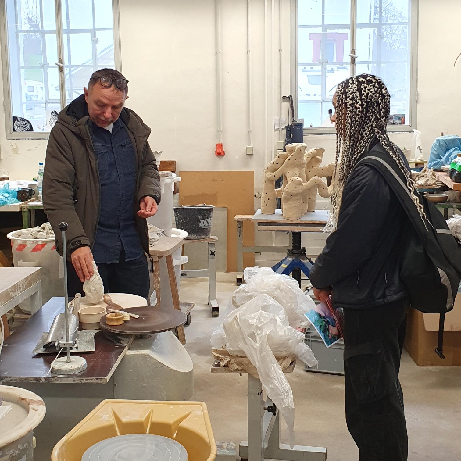 Inspirierend war der Besuch des Instituts für Künstlerische Keramik und Glas. Professor Gussek stellte Inhalte und Ablauf von Bachelor- und Masterstudiengang dar. Die Werke der derzeitigen Studierenden, die aus aller Welt nach Höhr-Grenzhausen kommen, verdeutlichen die vielfältigen Herangehensweisen, die durch das offene und anspruchsvolle Studium ermöglicht werden.