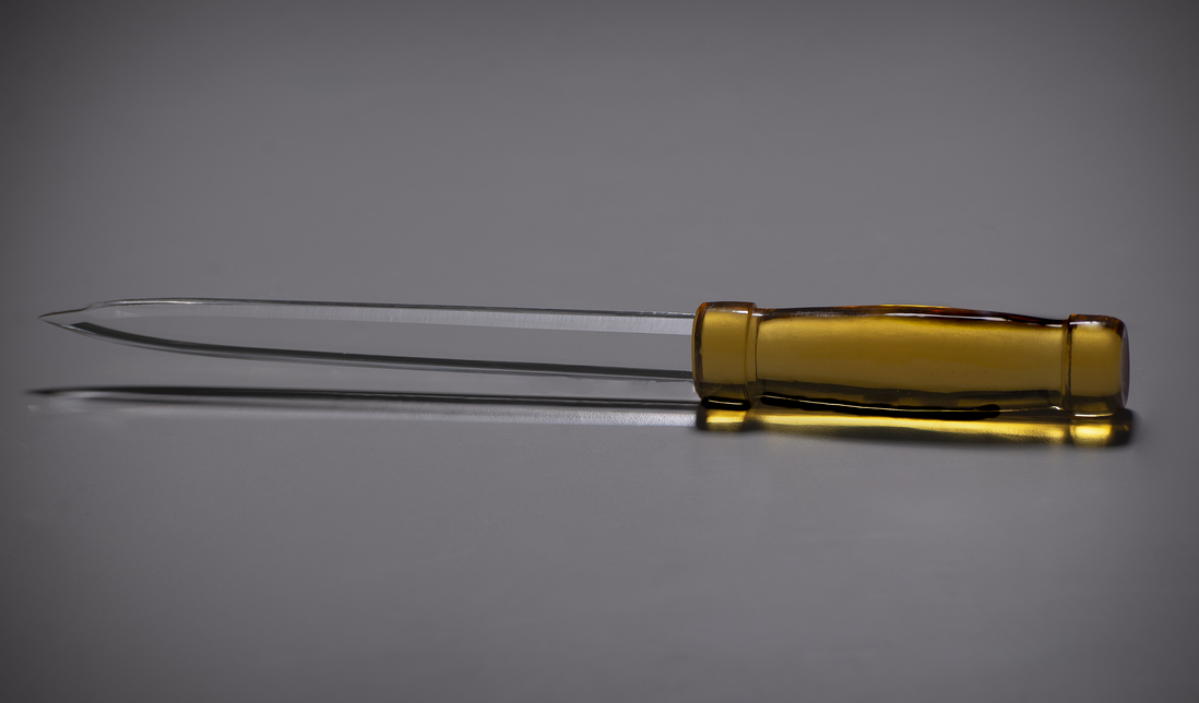 Die Auszeichnung für herausragende Beiträge zur Kriminalliteratur wird im Rahmen der Rheinbacher Krimiwoche jährlich von einer Jury rund um die Buchhandlung Kayser verliehen. Im vergangenen Jahr fand die Preisverleihung in der Rheinbacher Stadthalle statt. Dieses Jahr übernimmt die Glasfachschule NRW nicht nur erneut die Produktion des etwa 30 cm langen Glasdolchs, sondern richtet die Zeremonie erstmalig im eigenen Haus aus. Dabei werden auch Schülerarbeiten der Gestaltungstechnischen Assistentinnen und Assistenten zum Werk des Autors präsentiert.