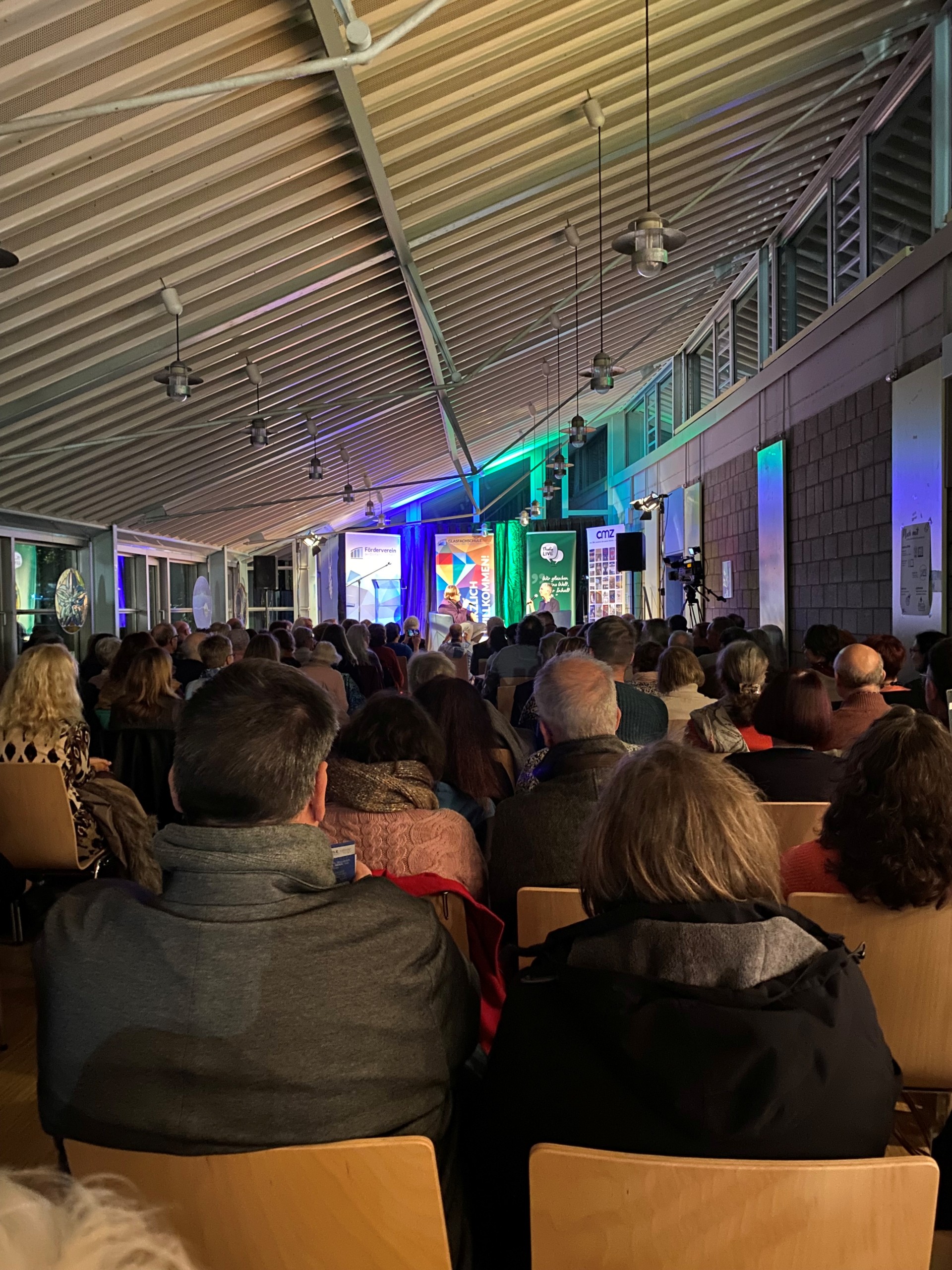 Genau dieses Innehalten, den Atem anhalten, kaum abwarten können, was kommt, spürte man bei der sich anschließenden Lesung der Autorin. Sie hatte dafür ihren neuesten Roman „The Killing Stones“ ausgewählt, der um den aus den Shetland-Krimis bekannten Ermittler Jimmy Perez kreist, diesen aber in neuer Umgebung, nämlich den Orkney-Inseln ansiedelt. Das Publikum lauschte gebannt auf jedes Wort und quittierte die durchaus überraschende Wendung mit viel Applaus.